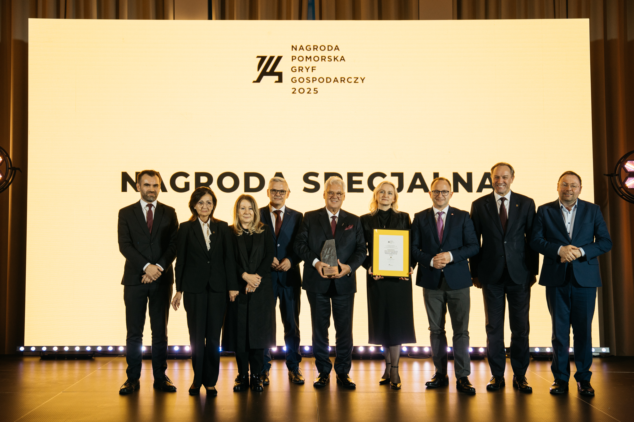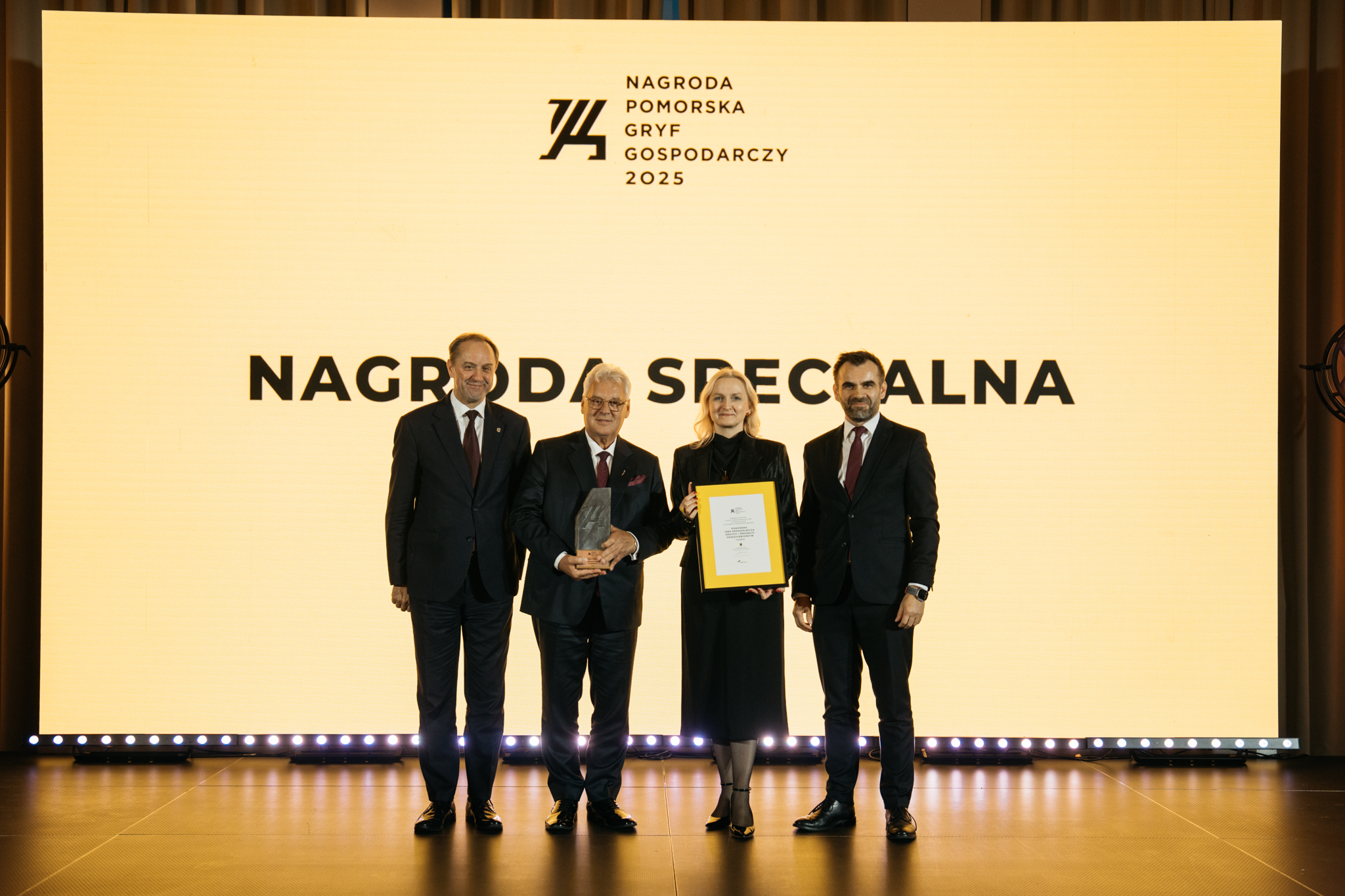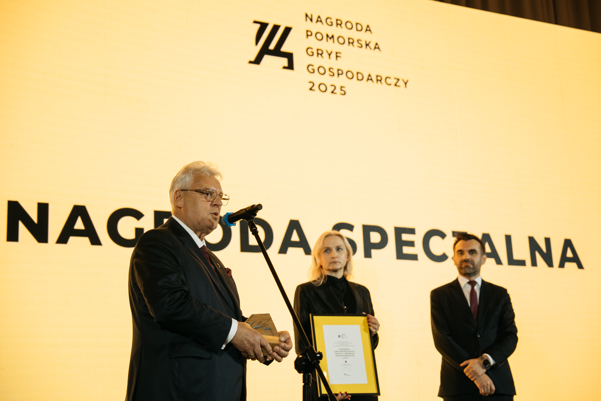 W programie gali finałowej Gryfa Gospodarczego znalazło się też wręczenie dwóch nagród specjalnych. Z okazji jubileuszu 80-lecia oraz w uznaniu zasług dla rozwoju pomorskiego rzemiosła nagrodę specjalną otrzymała Pomorska Izba Rzemieślnicza Małych i Średnich Przedsiębiorstw z Gdańska. Natomiast za nowatorskie na skalę europejską rozwiązanie Lex AI, czyli specjalistyczny model sztucznej inteligencji nagrodę specjalną otrzymało Konsorcjum Politechnika Gdańska Lex Secure SA z Gdańska.
