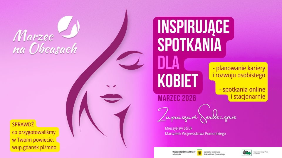 Już 2 marca startuje 13. edycja Marca na Obcasach. To seria bezpłatnych warsztatów, konsultacji oraz spotkań dla pełnoletnich kobiet z województwa pomorskiego, które chcą zadbać o swój rozwój zawodowy i osobisty. Chodzi o panie aktywne zawodowo, poszukujące pracy, mamy wracające na rynek pracy po kobiety planujące karierę w regionie.