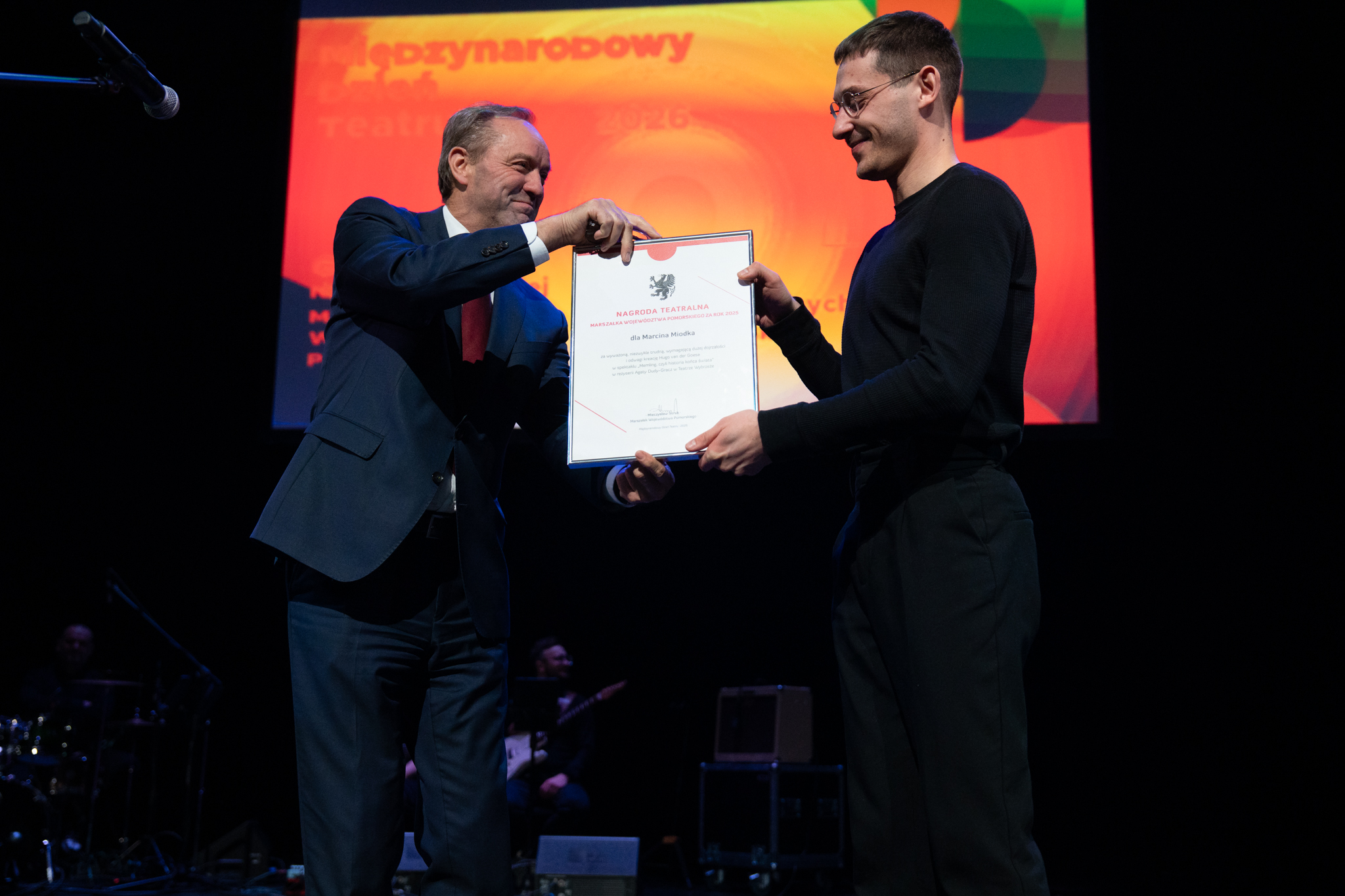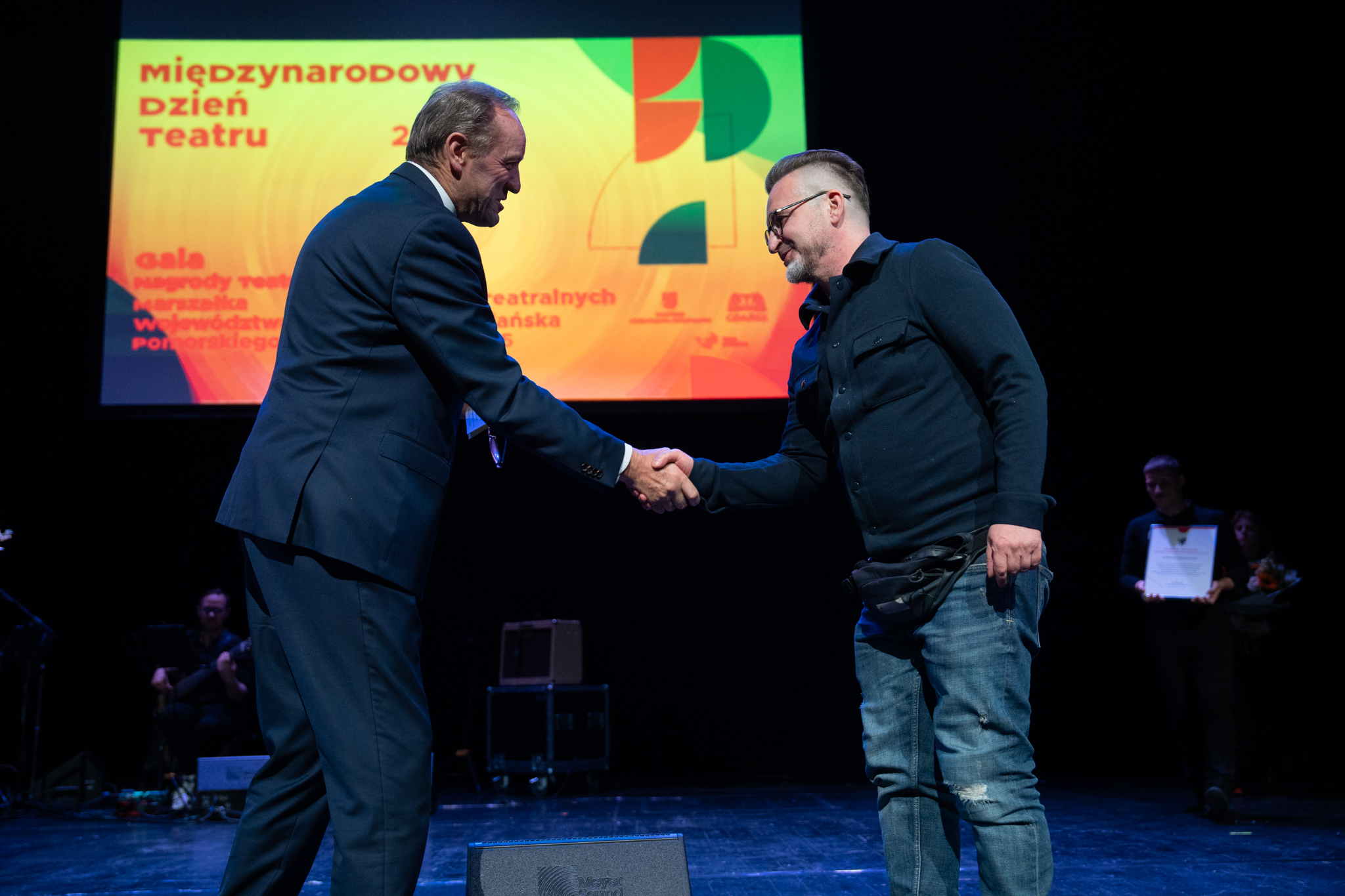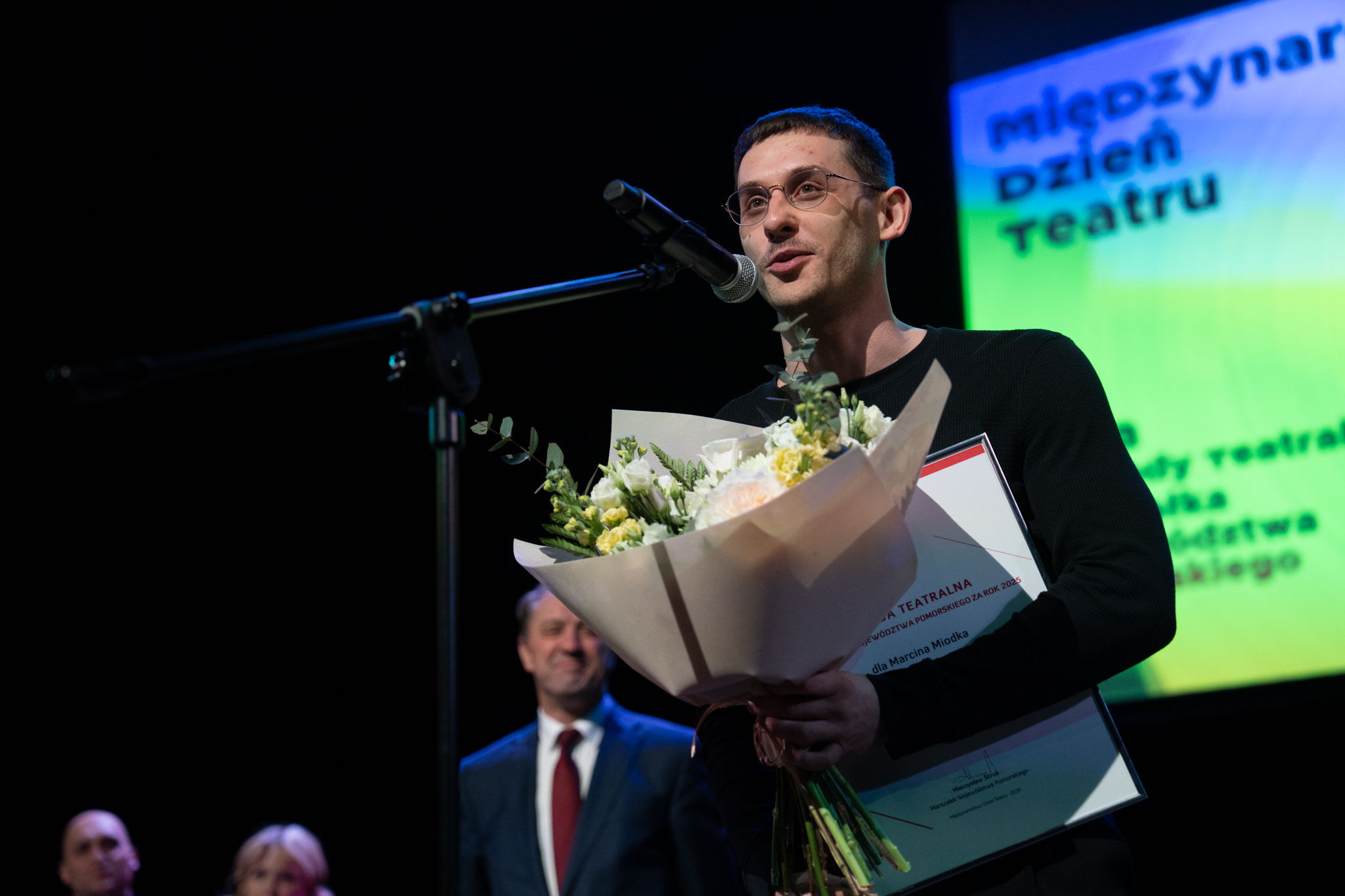 – W  tym bardzo trudnym świecie, świecie konfliktów, a mam na myśli nie tylko wojnę za naszą wschodnią granicą czy to, co się dzieje na Bliskim Wschodzie, ale także podziałów politycznych w naszej ojczyźnie oraz innych problemów, takich jak hejt, stygmatyzacja czy deprecjonowanie niektórych grup społecznych, teatr ma wybitną rolę – podkreślił marszałek Struk. – Chcemy wam, ludziom teatru dzisiaj gorąco podziękować za to, że nas niekiedy rozśmieszacie, za to, że wprawiacie w takie stany, że niejednokrotnie płyną łzy po naszych policzkach, ale także pobudzacie do refleksji nad naszym światem. Dodajecie nam otuchy. Sprawiacie, że ten świat jest lepszy. Bardzo wam za to dziękuję!