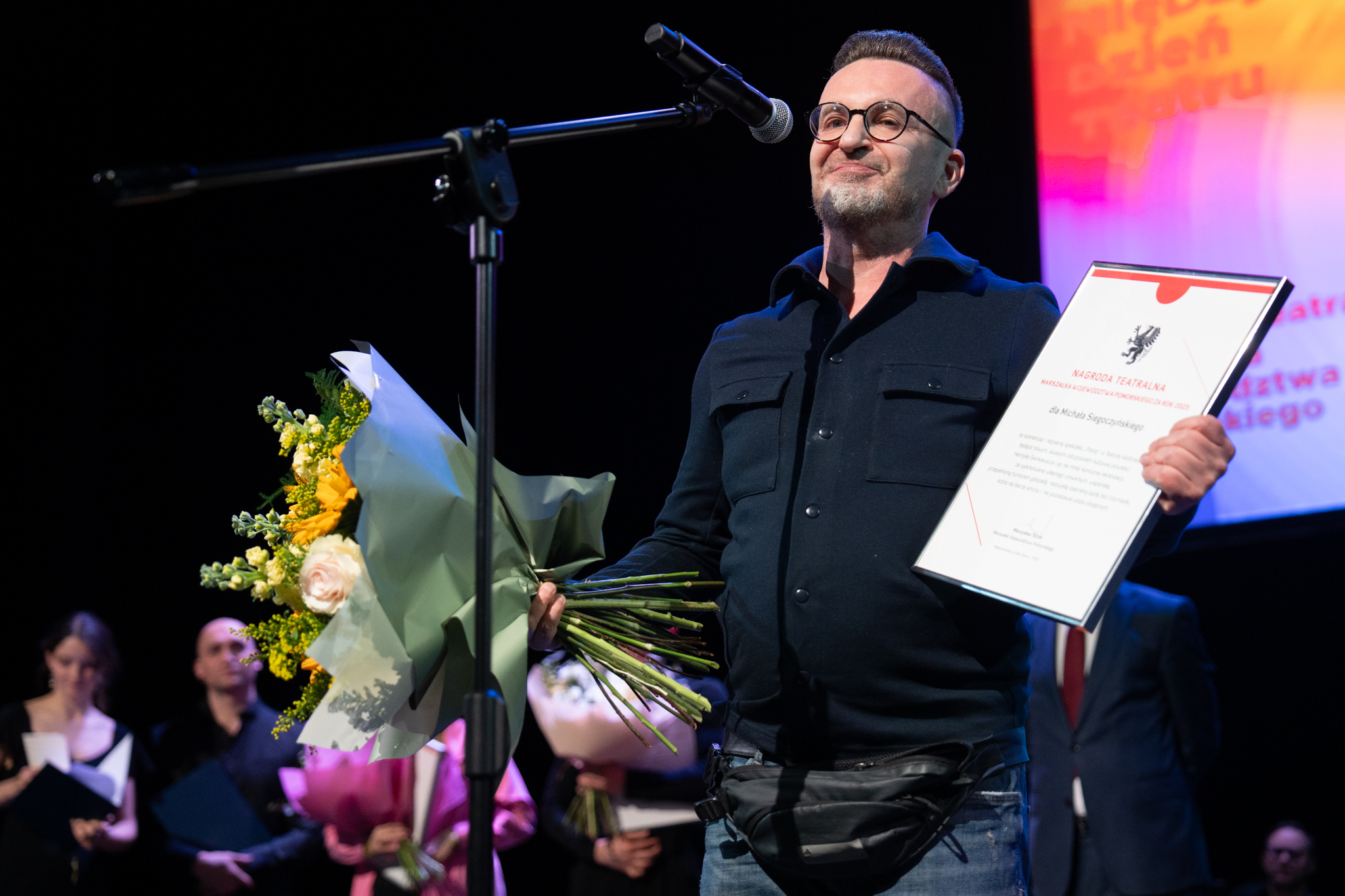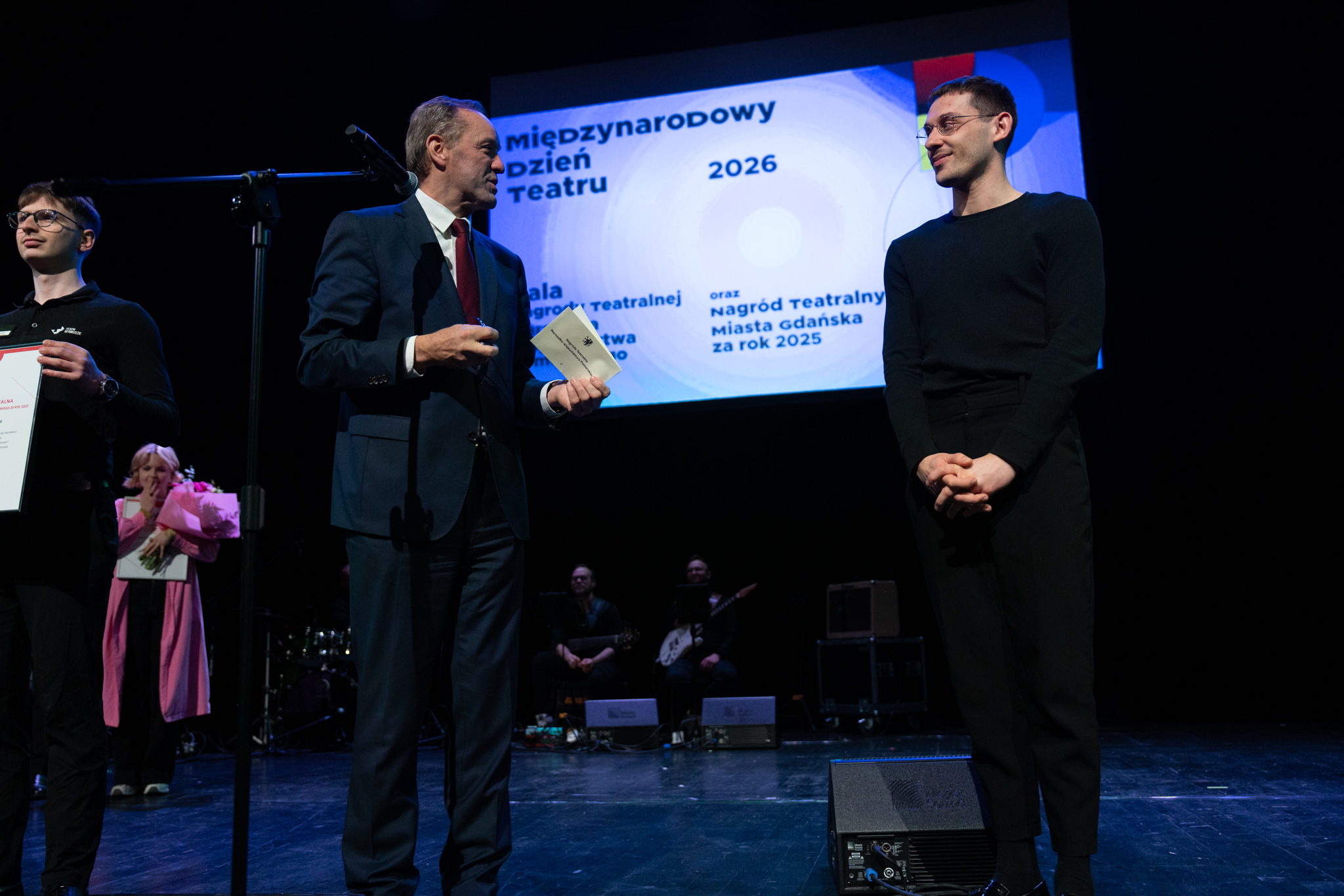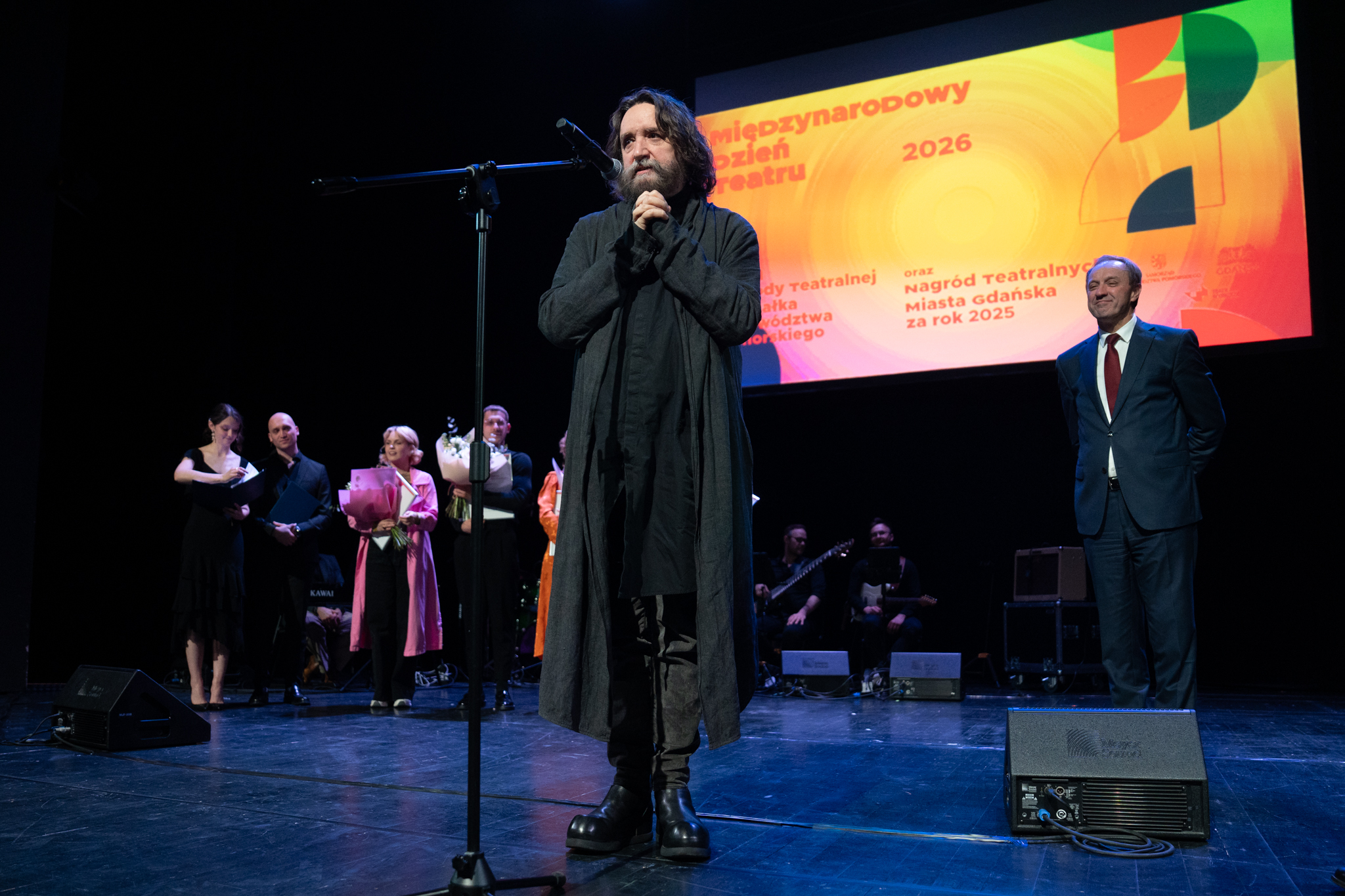 – W  tym bardzo trudnym świecie, świecie konfliktów, a mam na myśli nie tylko wojnę za naszą wschodnią granicą czy to, co się dzieje na Bliskim Wschodzie, ale także podziałów politycznych w naszej ojczyźnie oraz innych problemów, takich jak hejt, stygmatyzacja czy deprecjonowanie niektórych grup społecznych, teatr ma wybitną rolę – podkreślił marszałek Struk. – Chcemy wam, ludziom teatru dzisiaj gorąco podziękować za to, że nas niekiedy rozśmieszacie, za to, że wprawiacie w takie stany, że niejednokrotnie płyną łzy po naszych policzkach, ale także pobudzacie do refleksji nad naszym światem. Dodajecie nam otuchy. Sprawiacie, że ten świat jest lepszy. Bardzo wam za to dziękuję!