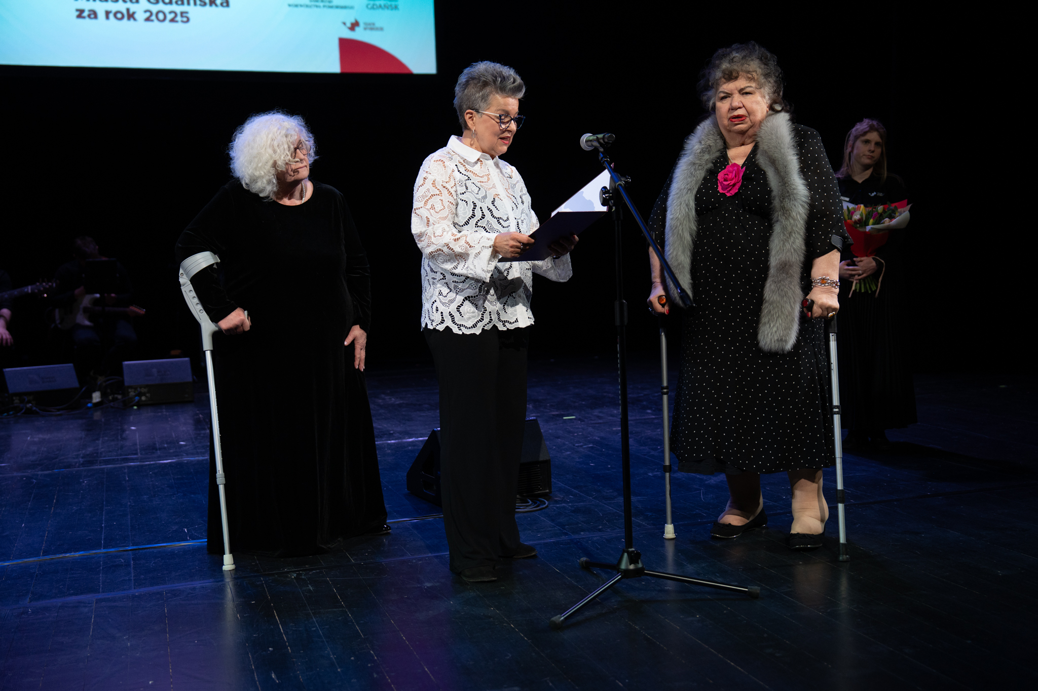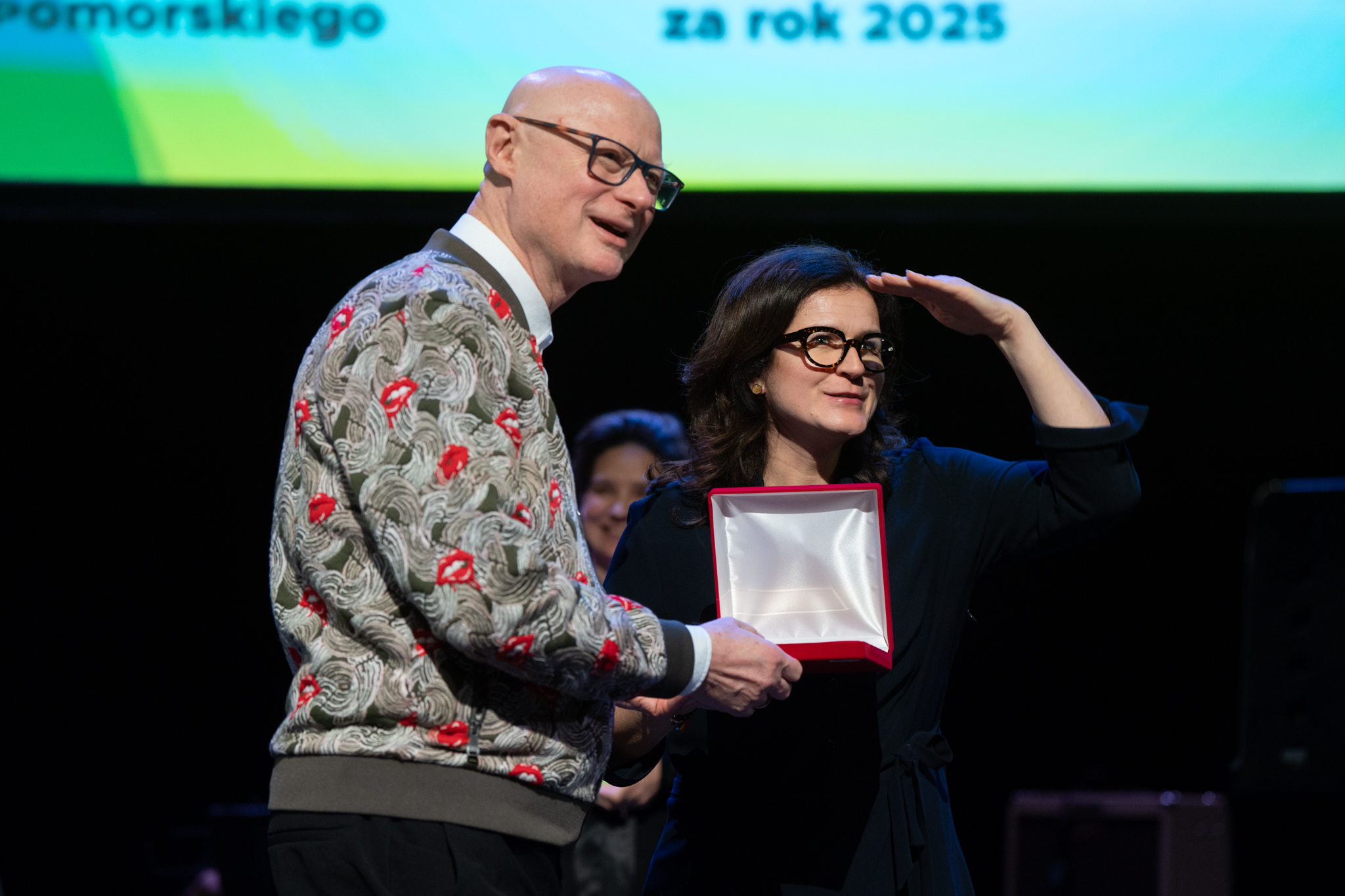 – Powiało w ostatnim sezonie powietrzem z innych światów. A to w Wybrzeżu rzecz z Memlinga i „Nosferatu”. A to w operze „Głos potwora”. Ludzie podobno najczęściej myślą o duchach i końcu świata w momentach kryzysu, niepewności jutra oraz w czasie przesileń kalendarzowych, jesienią i na przełomie roku. Mamy jednak wiosnę i nadziei nam trzeba, bo zbyt często świat obsadza nas w rolach, w których wcale nie chcemy grać – zaznaczyła w swoim wystąpieniu prezydent Gdańska Aleksandra Dulkiewicz. – W imieniu Gdańszczanek i Gdańszczan dziękuję wam, wszystkim ludziom teatru za to, że czynicie nasze życie wzniosłym.