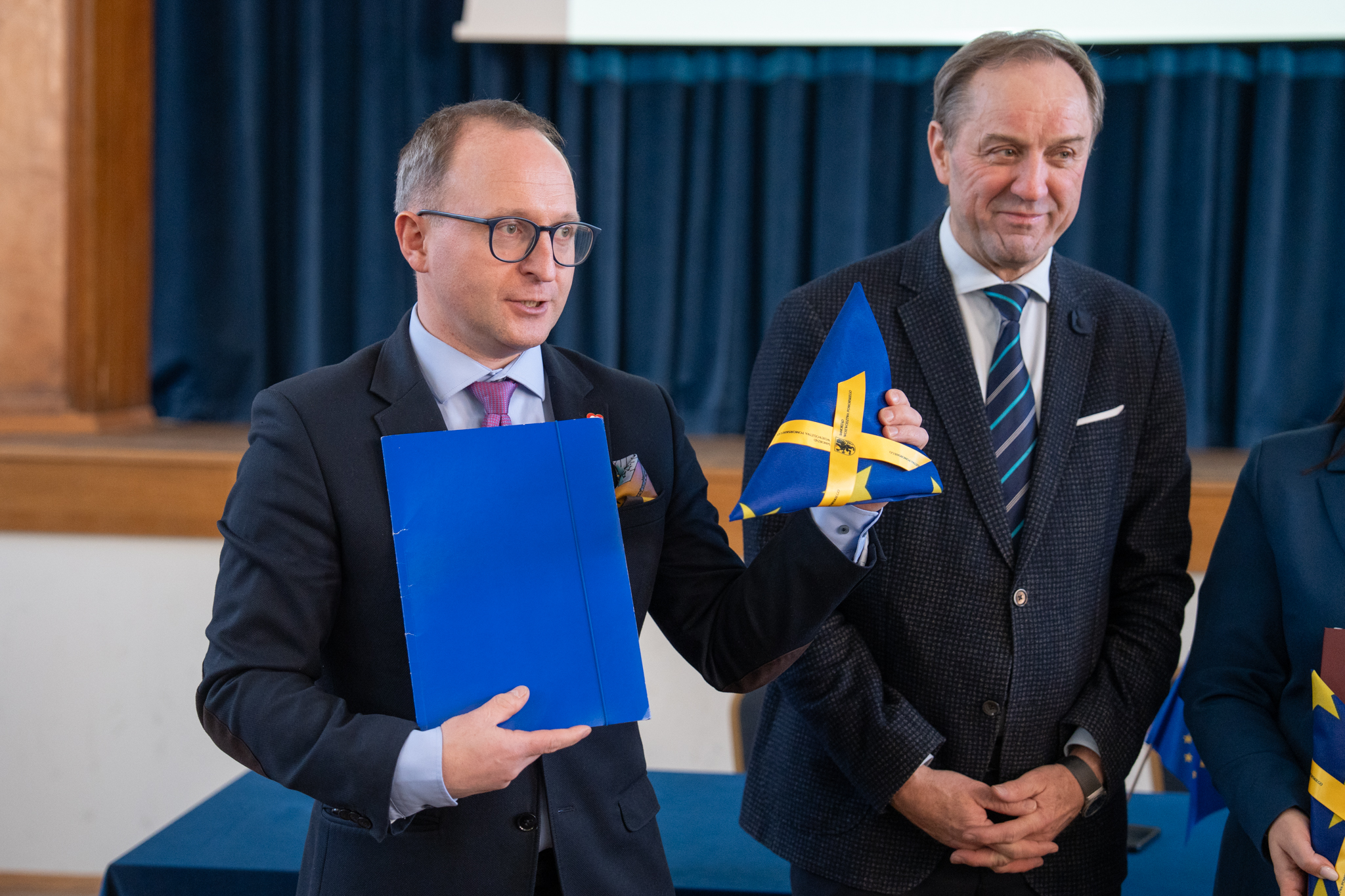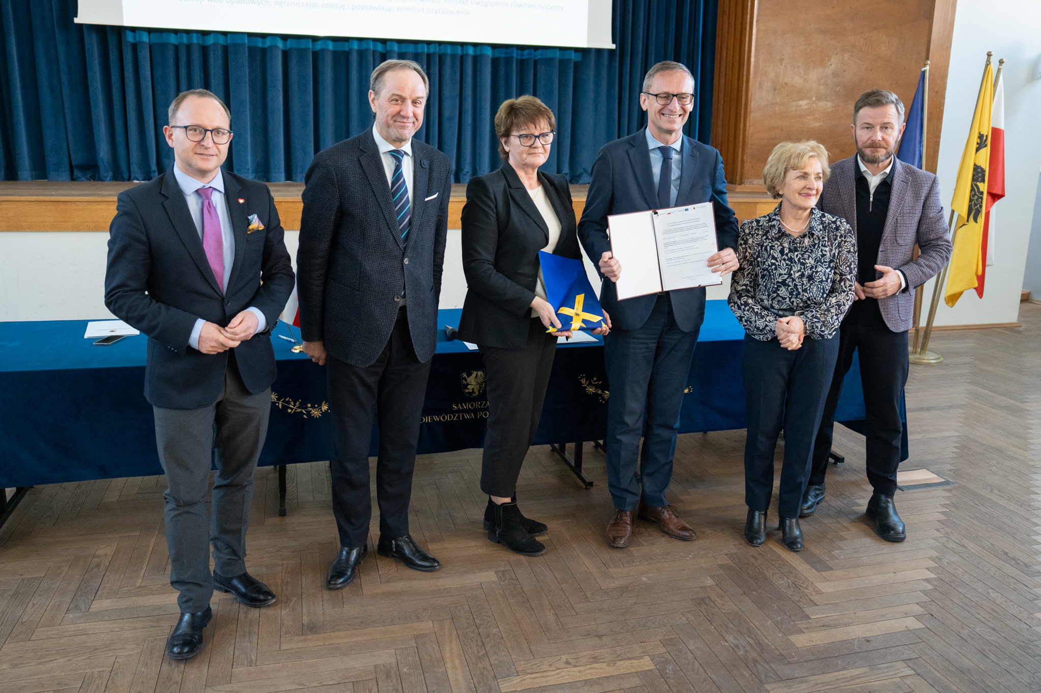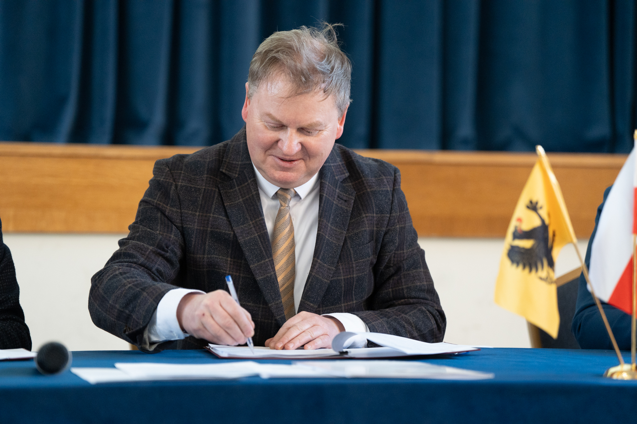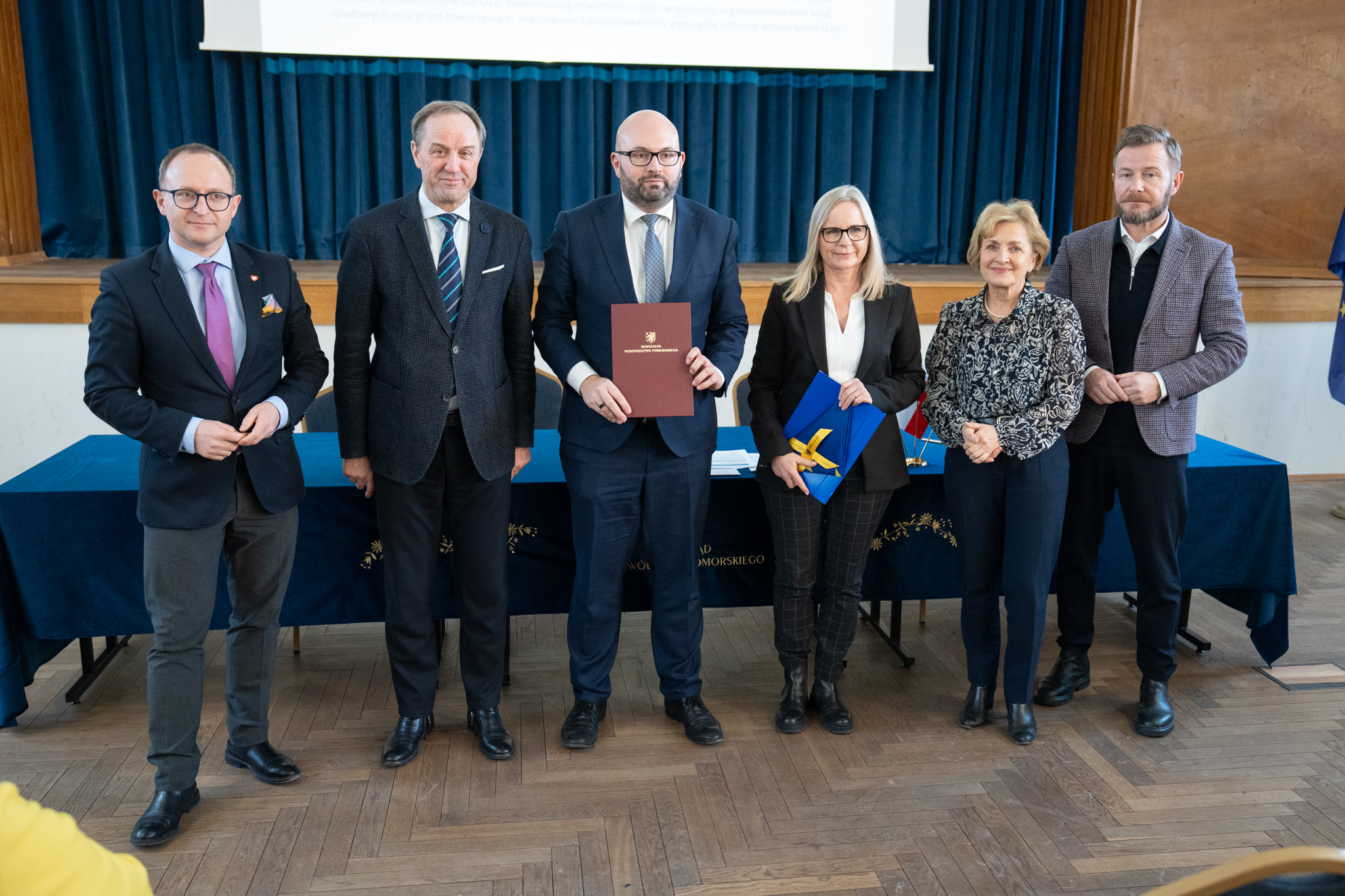 Marszałkowie województwa pomorskiego Mieczysław Struk i Marcin Skwierawski podpisali 2 kutego 2026 r. z przedstawicielami samorządów umowy na dofinansowanie projektów termomodernizacji budynków użyteczności publicznej.