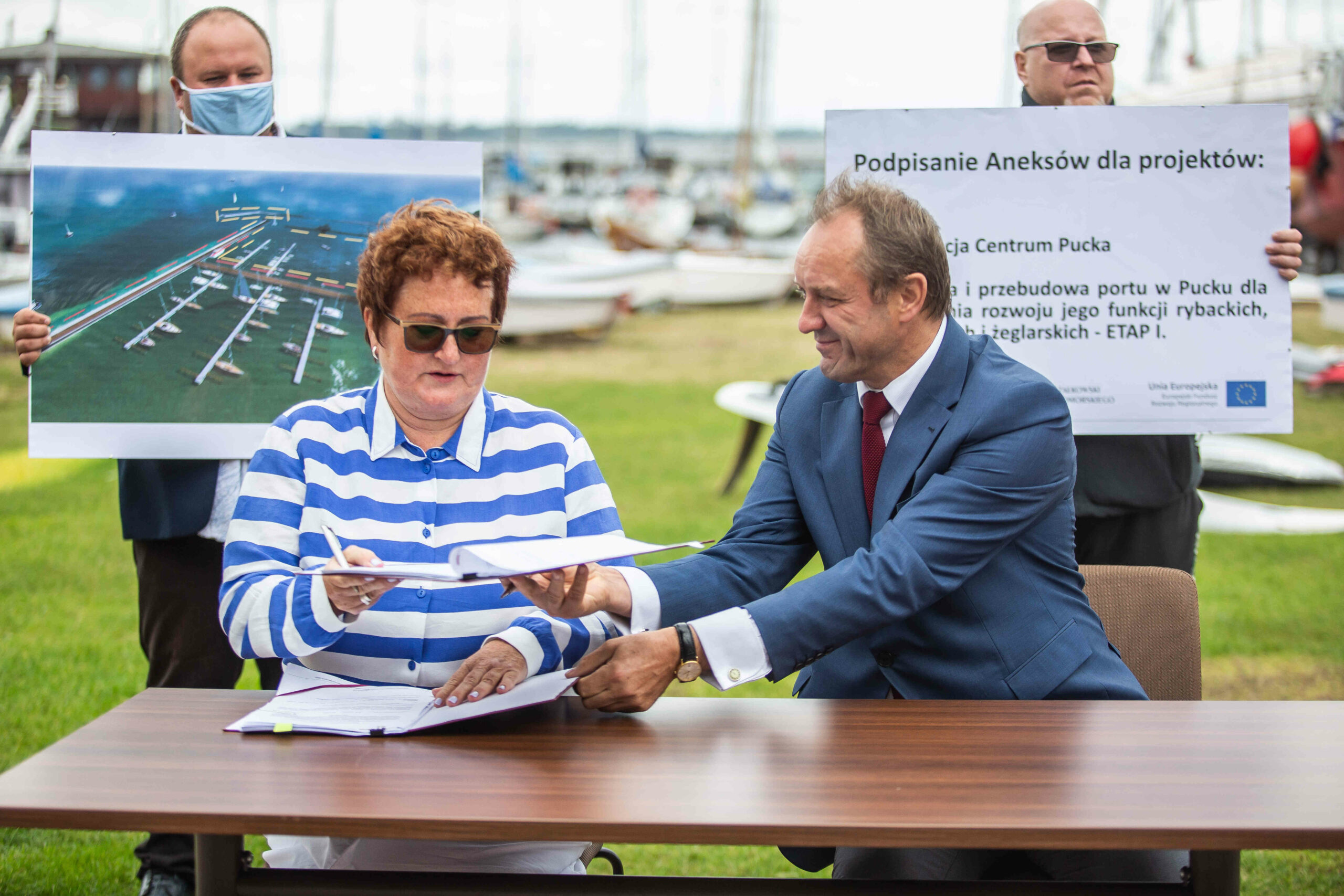 Aneksy do umów, zwiększające o prawie 7,8 mln zł dofinansowanie projektów, podpisali 31 lipca 2020 r. w Pucku marszałek województwa pomorskiego Mieczysław Struk oraz burmistrz miasta Hanna Pruchniewska.