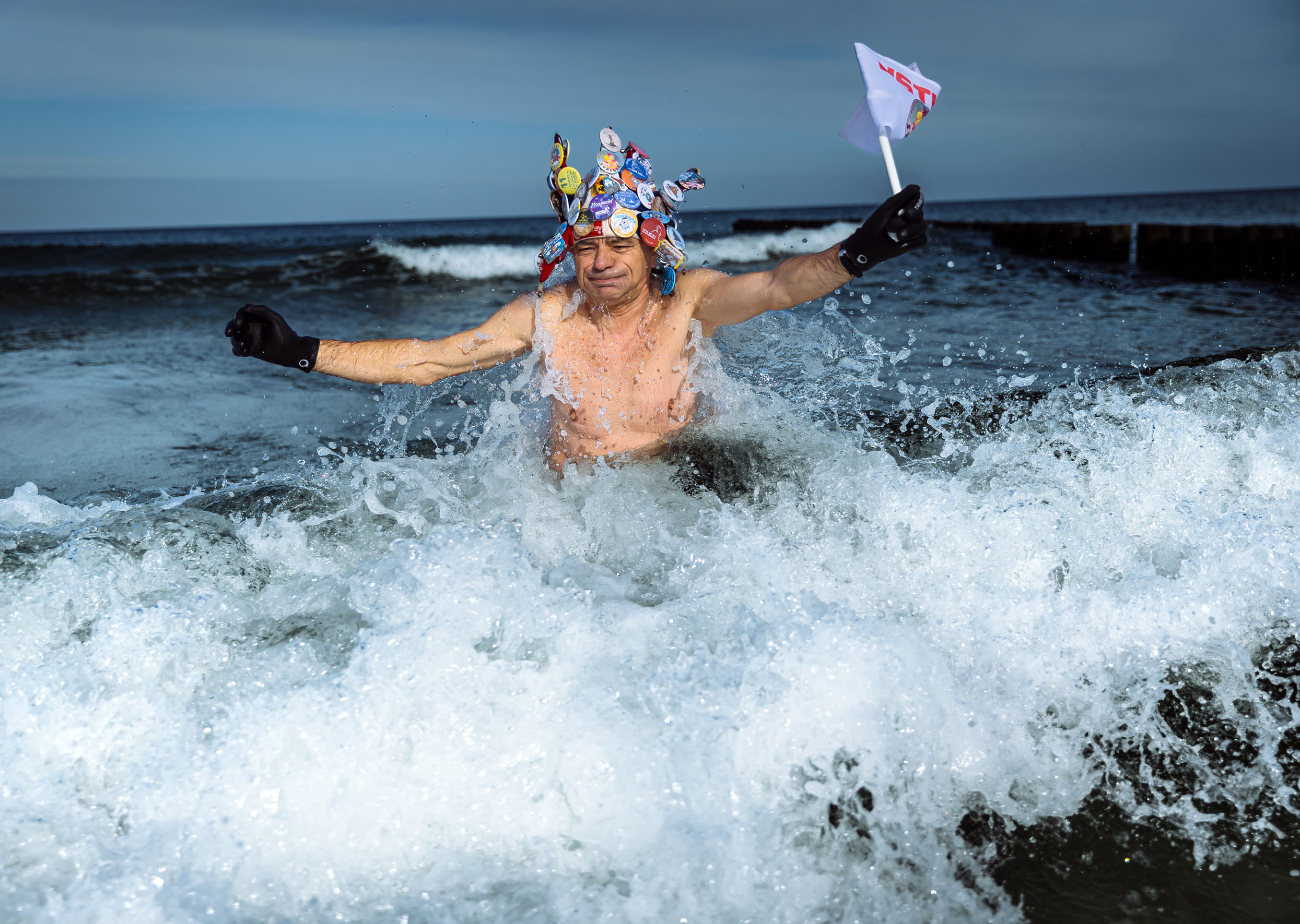 Do wykonania zdjęcia panu Adamowi, morsowi z Ustki potrzebne były wodery, czyli wysokie do pasa kalosze. Ale to nie był najbardziej zaskakujący ubiór. Jan Fereda z córką Izabelą Wroną z Pszczółek przebrali fotografkę w pszczelarski strój.