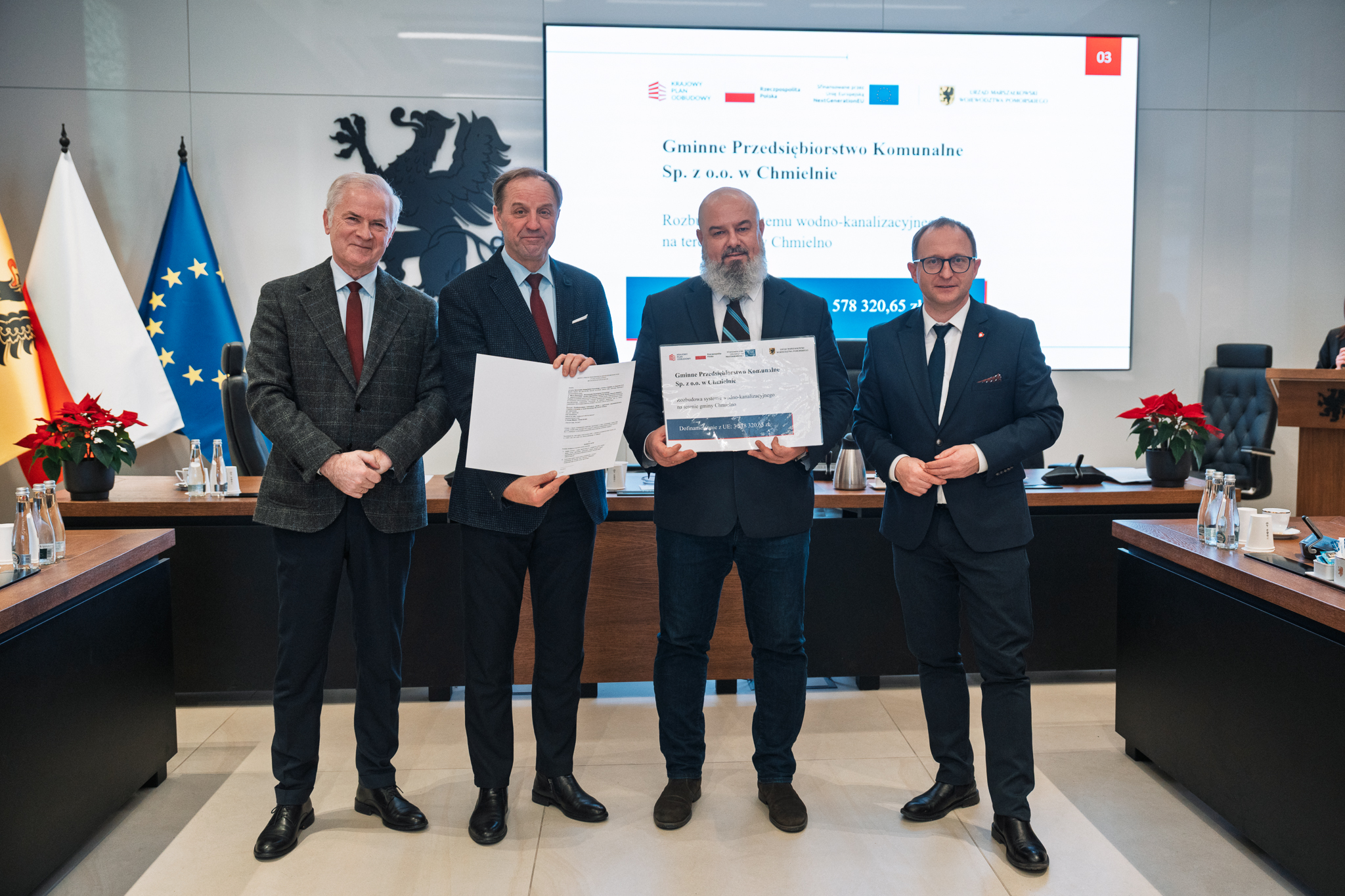 Symboliczne, ale mające realną wartość czeki przekazali samorządowcom oraz przedstawicielom spółek komunalnych marszałkowie województwa pomorskiego Mieczysław Struk oraz Marcin Skwierawski. Spotkanie w Urzędzie Marszałkowskim Województwa Pomorskiego było również okazją do przekazania beneficjentom najważniejszych informacji o KPO oraz o zasadach realizacji i rozliczania projektów.